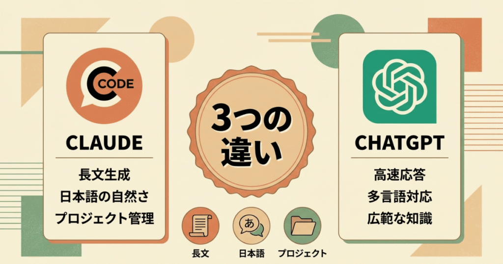 • ChatGPTとの3つの違い(長文生成、日本語の自然さ、Projects機能)