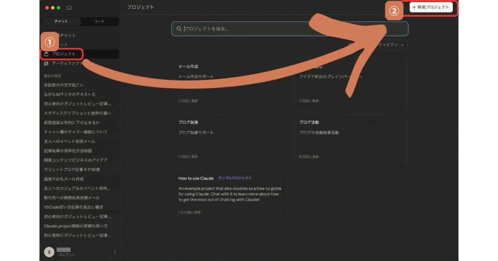 先ほど紹介したProjects機能(記憶を保持する機能)はProプラン限定です。「ブログ記事用」「メール作成用」といった用途別にClaudeをカスタマイズしたい方は、Proプランが必須になります。