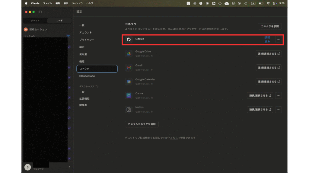 • Claude Code Webには標準でGitHubコネクタが用意されています