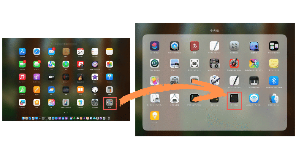 まず、ターミナル(アプリケーション → ユーティリティ → ターミナル)を開いて、以下のコマンドを入力してみてください: