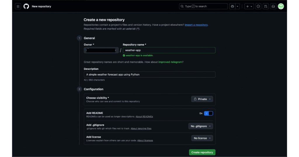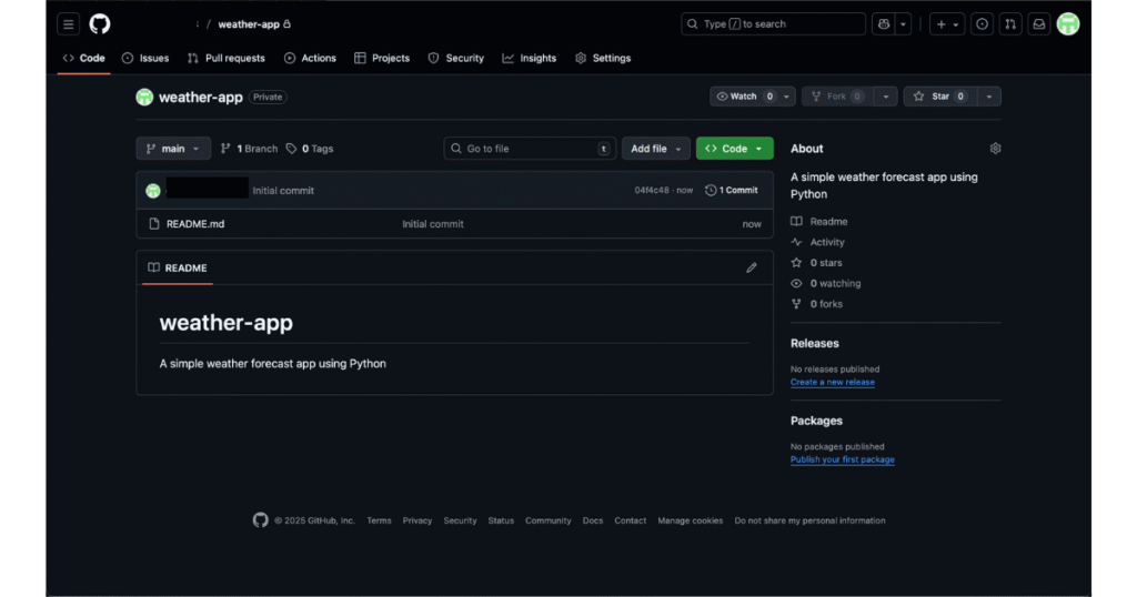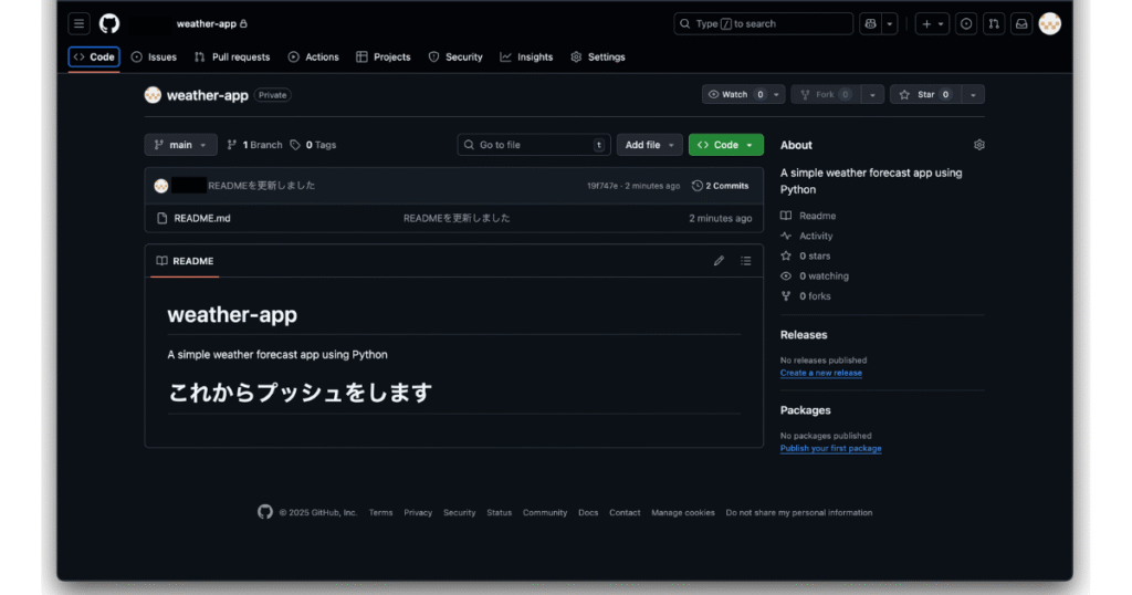 • プライベートリポジトリ(Private):自分だけ、または指定した人だけが見られる。学習中のコードや、公開したくないプロジェクトに最適