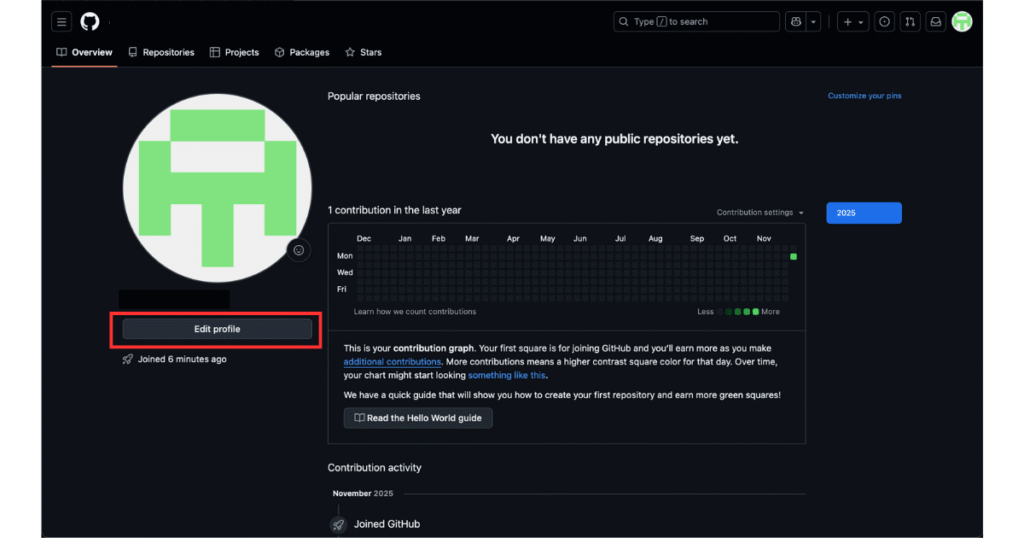 アカウントが作成できたら、プロフィールも設定しておきましょう。プロフィールを充実させておくと、将来的にポートフォリオとして見せる時に役立ちますよ。