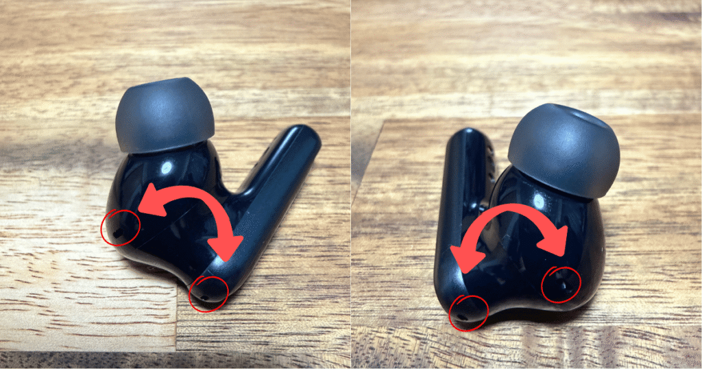 - 内側のマイク(耳に近い側):装着状態やユーザーの声を内部から拾う